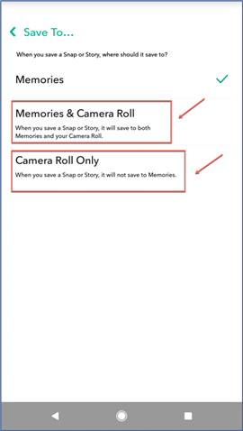 - 也可以通过这种方式备份 Snapchat 屏幕截图,尽管有一个单独的滑块可以检查这一点。