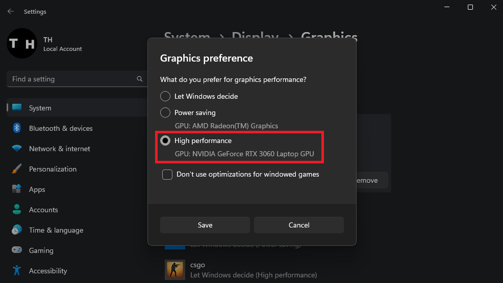 接下来,单击游戏的“选项”并将图形首选项设置为“高性能”。这将确保您的显卡在启动游戏后立即得到利用。