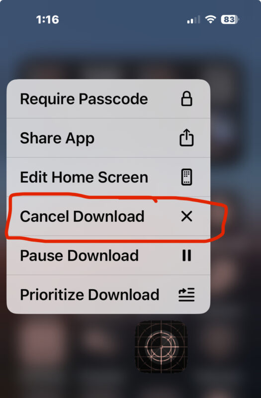 - 选择“取消下载”以停止应用程序下载