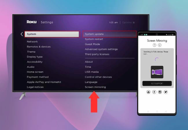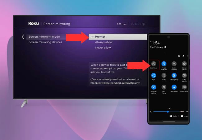 - 在 Roku TV 上,转到“设置”>“系统”>“屏幕镜像”>“屏幕镜像模式”,并确保将其设置为“提示”。