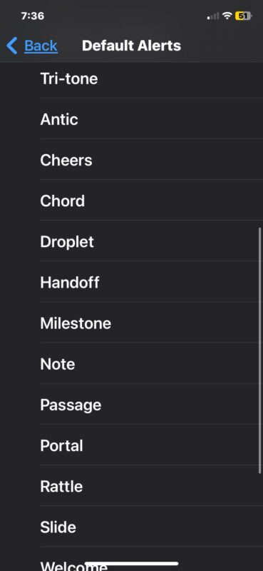 请记住,这会更改默认警报声音,它不会更改您的短信铃声、铃声、电子邮件声音或其他声音效果,尽管您也可以在设备上的相同声音和触觉设置中更改这些声音。