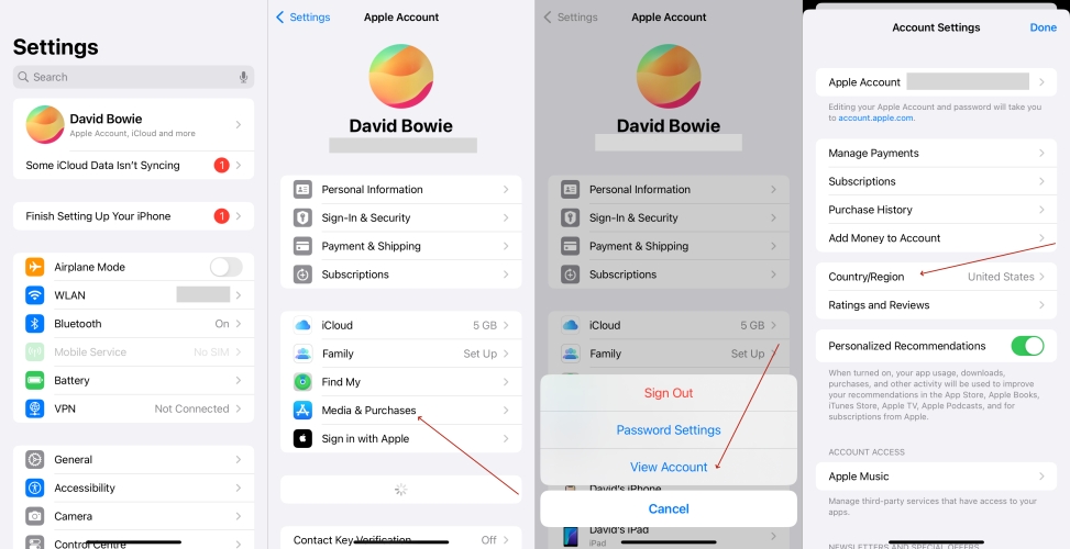 步骤2。在“国家/地区和配置文件”下,选择要切换到的新国家/地区。