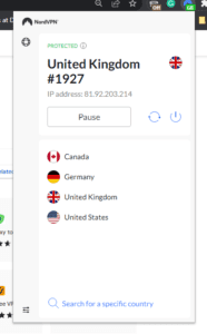 - 从列表中选择您喜欢的国家/地区。如果快速连接列表中没有您想要的国家/地区,您也可以搜索。 (我这里选择英国)。