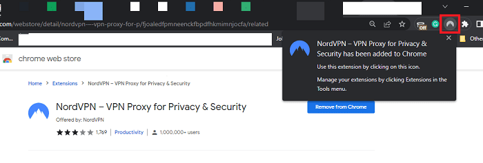 - 安装后,单击 NordVPN 扩展图标。