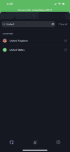 - 搜索并连接到首选服务器位置。在本例中,我连接到美国。