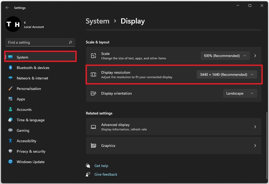 向下滚动到您的规模与布局用于预览推荐的本机显示器分辨率的选项。