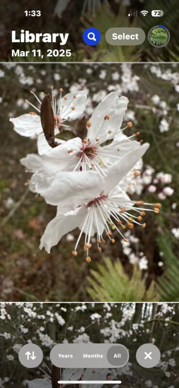 当您使用这些手势时,您会注意到,如果您愿意,可以使缩略图基本上占据屏幕的整个宽度,或者将其缩小,以便在屏幕上同时显示许多缩略图。如何使用此功能完全取决于您以及您希望在特定照片应用和设备上看到的内容。