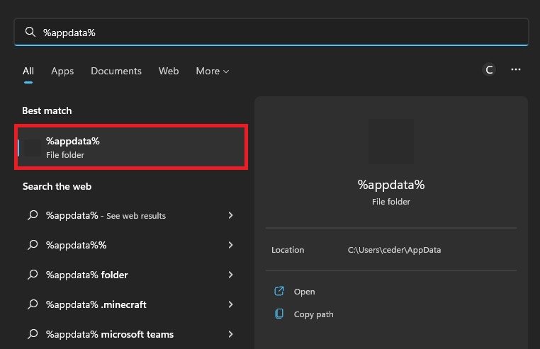 首先,请确保关闭Roblox。接下来,请确保找到本地安装的Roblox文件。这些文件的默认保存位置在您的AppData文件中。搜索%应用数据%在您的开始菜单中搜索并点击Enter。