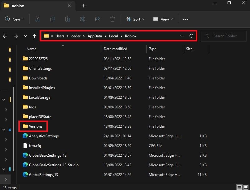 您的文件资源管理器将打开。从这里导航到AppData>当地的>罗布乐思。继续导航到最近的版本文件夹。
