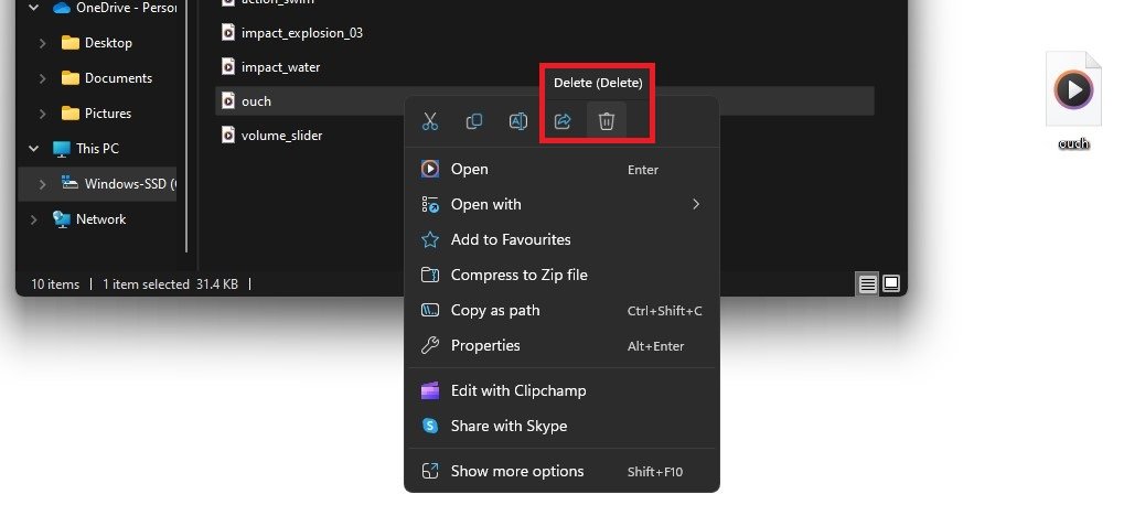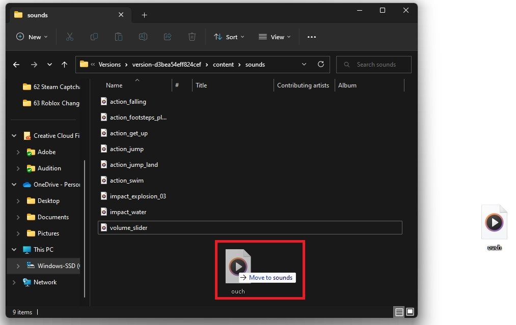下载您喜欢的声音效果后,将其定位在您的下载文件夹中,并将其重命名为原始声音文件,在这种情况下,将其重命名为“ ouch”。