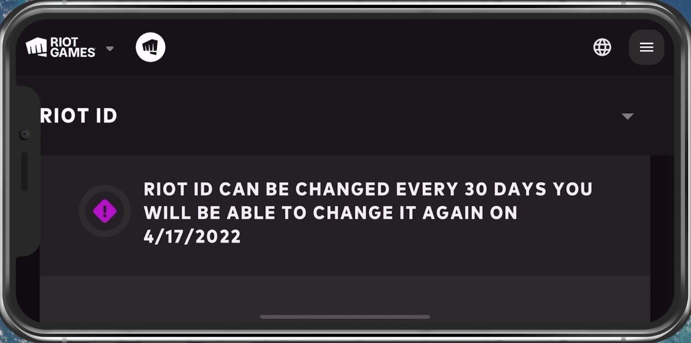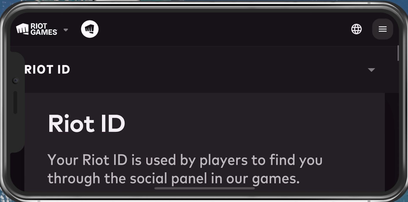 登录后,您可以找到您的所有个人资料信息,并且可以更改这些信息。点击防暴ID。这将允许您输入新的 Riot ID 和口号。