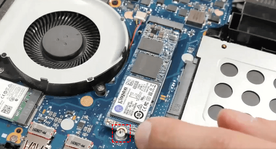 步骤1。关闭计算机并拔掉电源线。然后打开机箱,找到SSD并将其插入插槽。