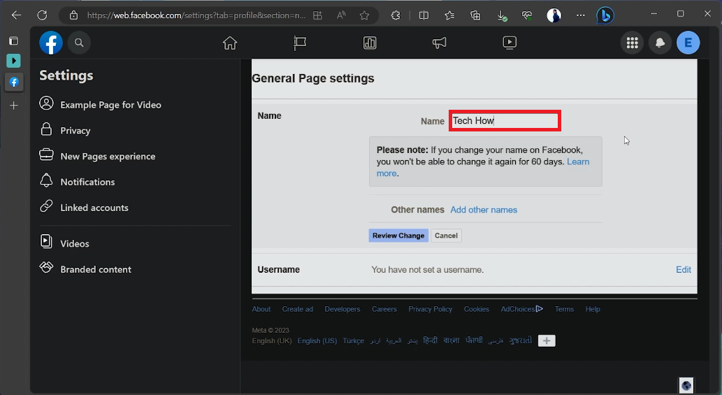 ⚠️重要:在点击“审核更改”按钮之前,请记住,Facebook 可能需要最多 3 天的时间来审核您的姓名更改请求。此外,您在 60 天内无法再次更改该名称。