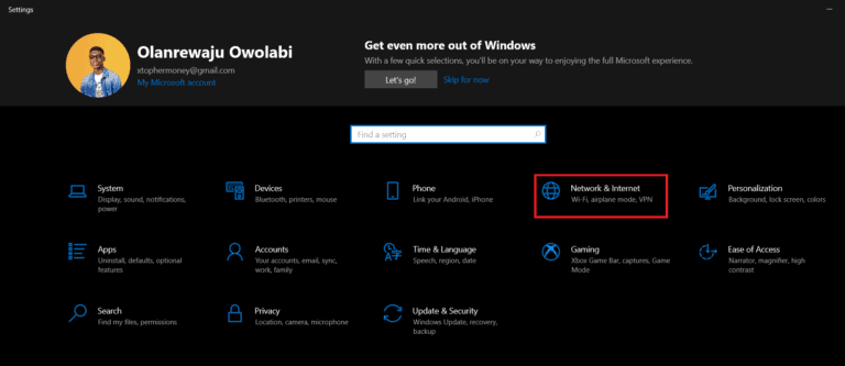 - 登录您的管理员帐户。然后转到您的 Windows 设备的“设置”。