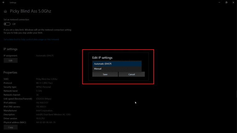 - 在下面 ”编辑 IP 设置,“ 选择 ”手动的” 从下拉菜单中。