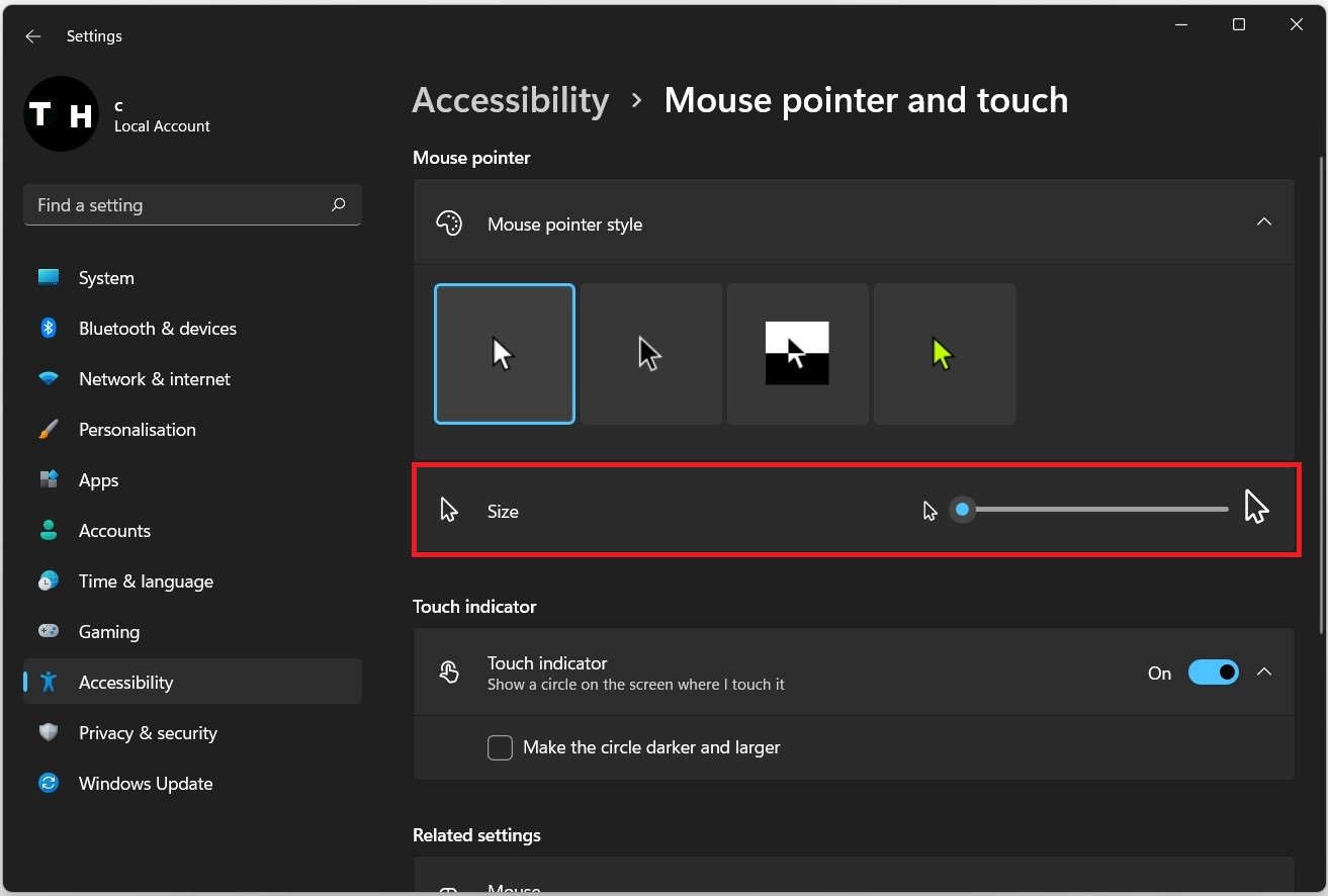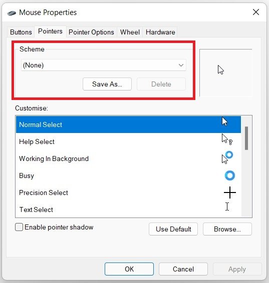 在下面指针,您可以更改Windows 11的鼠标指针和其他光标图标的样式。