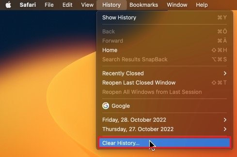 要清除浏览器历史记录,请关闭此窗口,然后返回菜单栏中,导航到历史并选择清除历史记录。