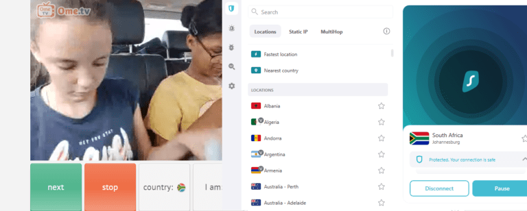 通过 Surfshark 连接后,可以在 OmeTV 上与陌生人聊天。