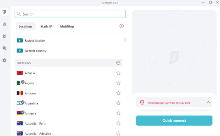 - 快速地。Surfshark 速度很快,并提供无限带宽,通过其服务器提供无延迟的视频聊天。