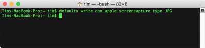 - 要将屏幕截图格式更改为 JPG、TIFF、GIF、PDF 或 PNG,请输入命令默认写入 com.apple.screencapture 类型后跟一个空格,然后键入相关的格式后缀。 (我们在下面的示例中使用了 JPG。)