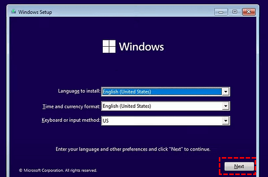 步骤2。出现 Windows 设置窗口后,按照说明完成设置。