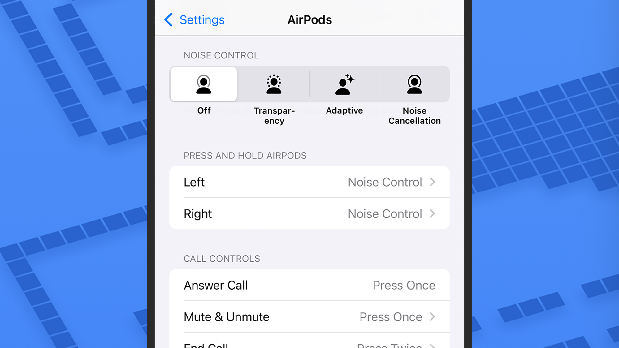 您还可以在同一AirPods菜单上调用控制选项。当用耳塞打电话而不是听音乐或播客时,按下迫使它们而获得的动作会改变。