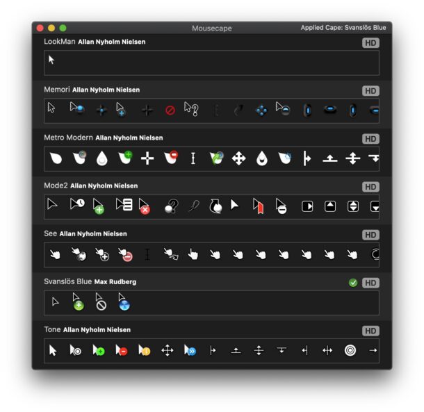 如果您在网络上搜索,您会发现更多,但奇怪的是没有一个专注于 Mousescape 光标的统一存储库或论坛。对于这样一个有趣独特的应用程序,这似乎很方便,但可惜......