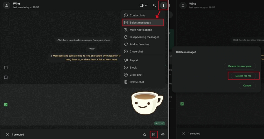 步骤 3.返回 WhatsApp 并选择您要删除的消息。