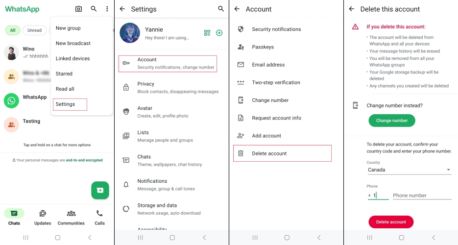 删除 WhatsApp 中的个人帐户不仅会从所有设备中删除您的帐户,还会删除您的所有 WhatsApp 消息和备份。