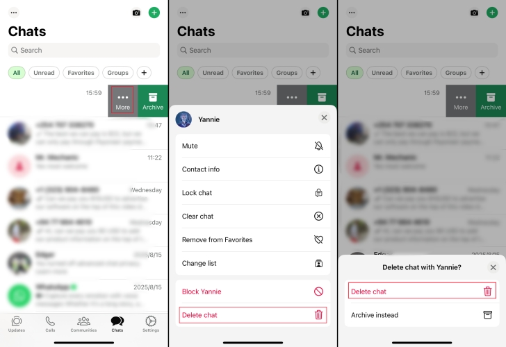 WhatsApp 用户可以通过一些简单的步骤从聊天页面删除特定的个人聊天。