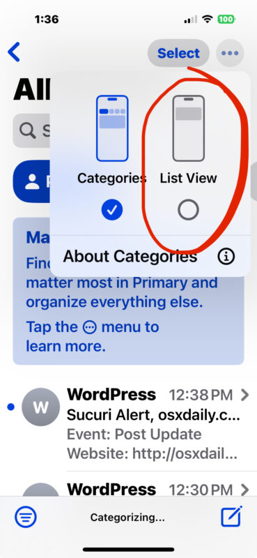 如果您最近在更新到 iOS 18.2 或 iPadOS 18.2 后打开了邮件应用程序,您可能会发现邮件现在默认为邮件“类别”视图,显示不同的邮件类别收件箱; “主要”、“交易”、“更新”和“促销”。据推测,Apple 选择重新设计每个人的收件箱,并在 iPhone 和 iPad 上默认启用“邮件类别”,因为他们认为用户希望重新设计电子邮件应用程序,并且必须采取额外的步骤才能查看所有电子邮件,但“邮件类别”功能已经让许多用户感到沮丧,他们不想摸索新的复杂用户界面,该界面隐藏了许多电子邮件,无法立即查看,更不用说看到他们的电子邮件被分类到类别中,而且经常是错误的。