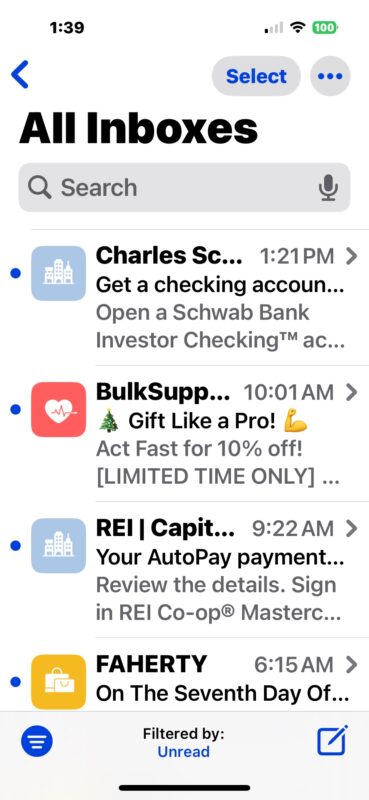 不过,iPhone 和 iPad 邮件应用程序上新的邮件收件箱排序和类别功能并不是唯一令人沮丧的变化,您可能会注意到,邮件收件箱列表中的项目旁边现在也有大而显眼的发件人个人资料图标,这使得更难阅读电子邮件的发件人、主题是什么或消息预览是什么。它看起来也像是从社交媒体信使借来的俗气的东西,并且许多邮件应用程序用户也不喜欢它,但幸运的是,它也可以关闭。由于设置和界面的不一致与许多苹果软件是一致的,因此该特定设置可以在邮件的“设置”应用程序中找到,而不是在大多数用户无论如何都会忽略的一些新的特殊“...”按钮中。