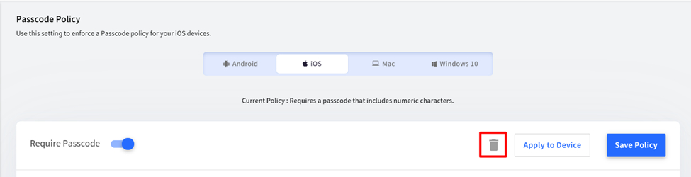 步骤2。单击设备配置文件和策略按钮并选择密码政策,然后切换到 iOS 选项卡。