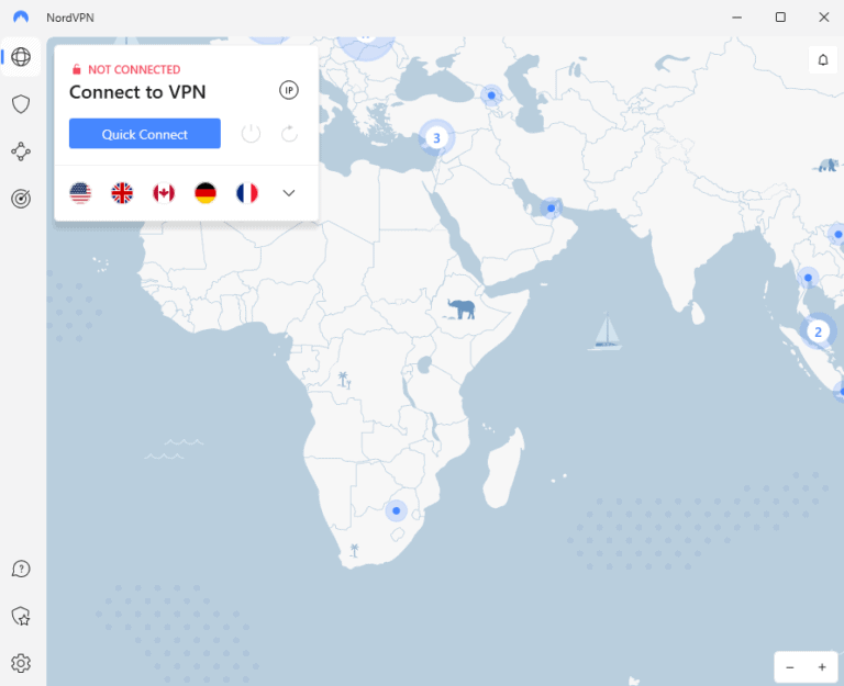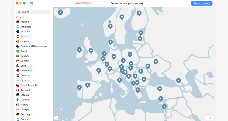 - 您将登录适用于 macOS 的 NordVPN 应用程序。现在,单击快速连接右上角的按钮可连接到最近/最快的 NordVPN 服务器。