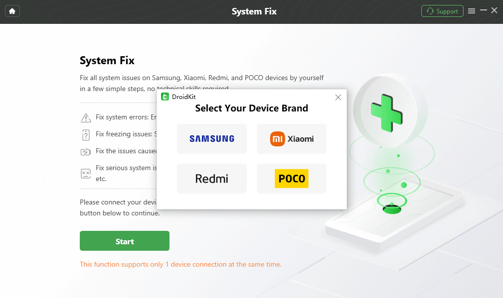 第2步。在检测到Android设备后,单击“开始”按钮。目前,这支持三星,小米,Redmi和Poco设备。