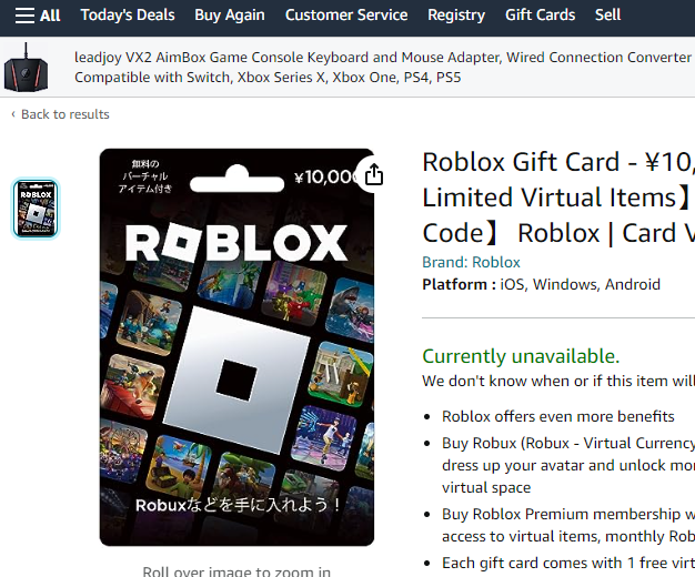 前往亚马逊主页并在搜索栏中输入“Roblox 礼品卡”。使用您兑换的亚马逊礼品卡进行购买 - 只需在结帐时选择“亚马逊支付”选项即可。这个简单的过程让您无需自掏腰包即可购买 Roblox 礼品卡。