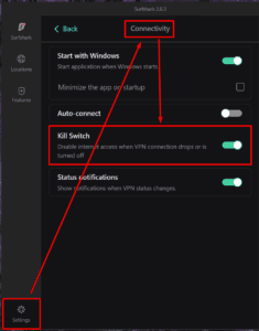 Surfshark 的唯一缺点是需要自己启用终止开关。