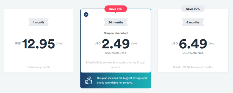 最棒的是,有一个30 天退款保证还有这个海量折扣为期两年的订阅,您无需花太多钱即可尝试 Surfshark!
