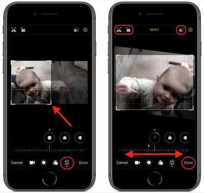 编辑界面底部的第四个也是最后一个图标可打开裁剪工具。您可以使用通过拖动其角落出现的网格覆盖轻松裁剪视频,就像处理照片一样。