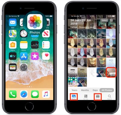 在您的 iPhone 或 iPad 上启动 Stock Photos 应用程序,然后使用照片选项卡。如果您要编辑的不是最近的视频,请使用天,几个月, 和年视图来缩减您的收藏,或通过以下方式从您的相册之一中选择剪辑专辑选项卡。