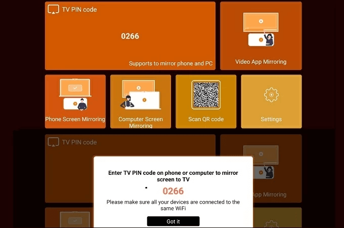 6.之后,输入别针代码显示在 Mac 上的小米电视上。
