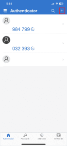 - 打开智能手机上的身份验证器应用程序,然后单击加号以添加帐户。
