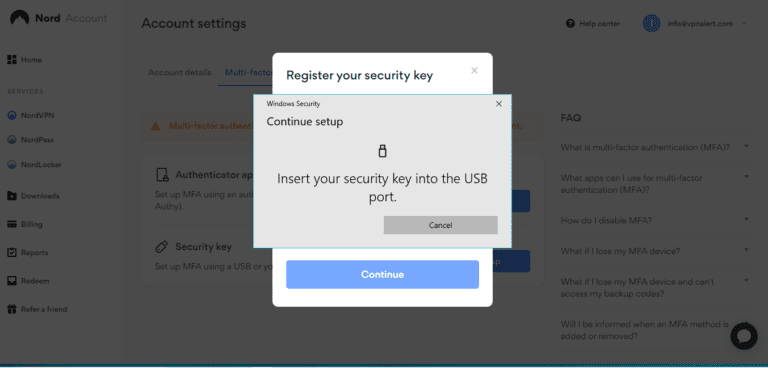 错误的设置过程或不受支持的安全密钥是 NordVPN 多重身份验证错误的主要原因。