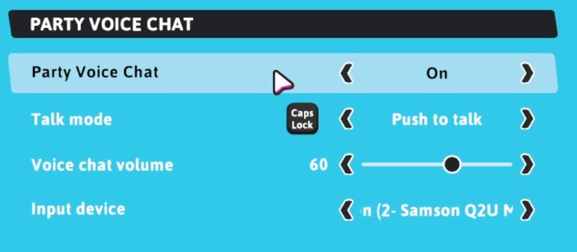 您还可以预览一键通键,该键将设置为大写锁定。在键盘设置下控制绑定,您可以从那里更改按键通话键。改变语音聊天音量您偏好的值;您可以稍后在游戏中更改此选项,看看什么最适合您。最后,设置输入设备到您喜欢的麦克风。
