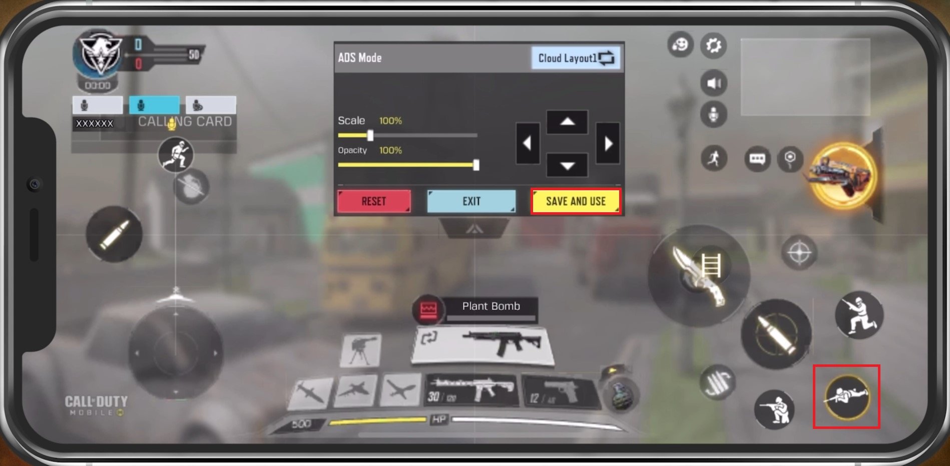 COD 移动设置 > 基本 > 隐藏俯卧按钮(禁用)