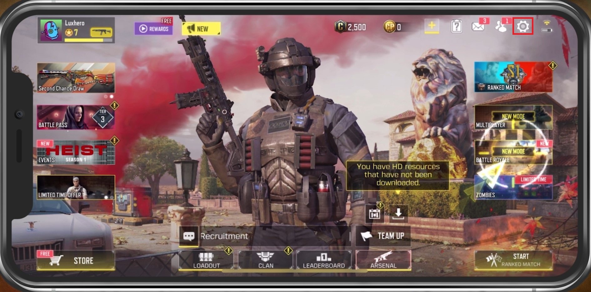 打开 COD 手机并导航至您的游戏设置点击屏幕右上角的齿轮图标。