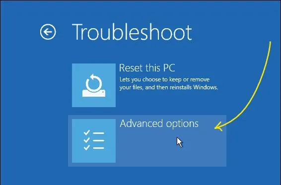 - 现在在恢复屏幕上,单击“高级选项”