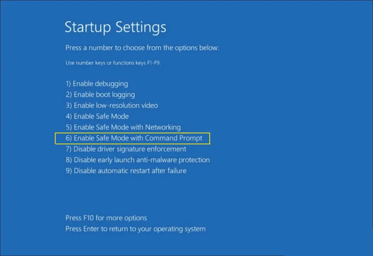 - 相应地选择,您可以按 F4 进入安全模式,但我建议选择“使用命令提示符启用安全模式”。