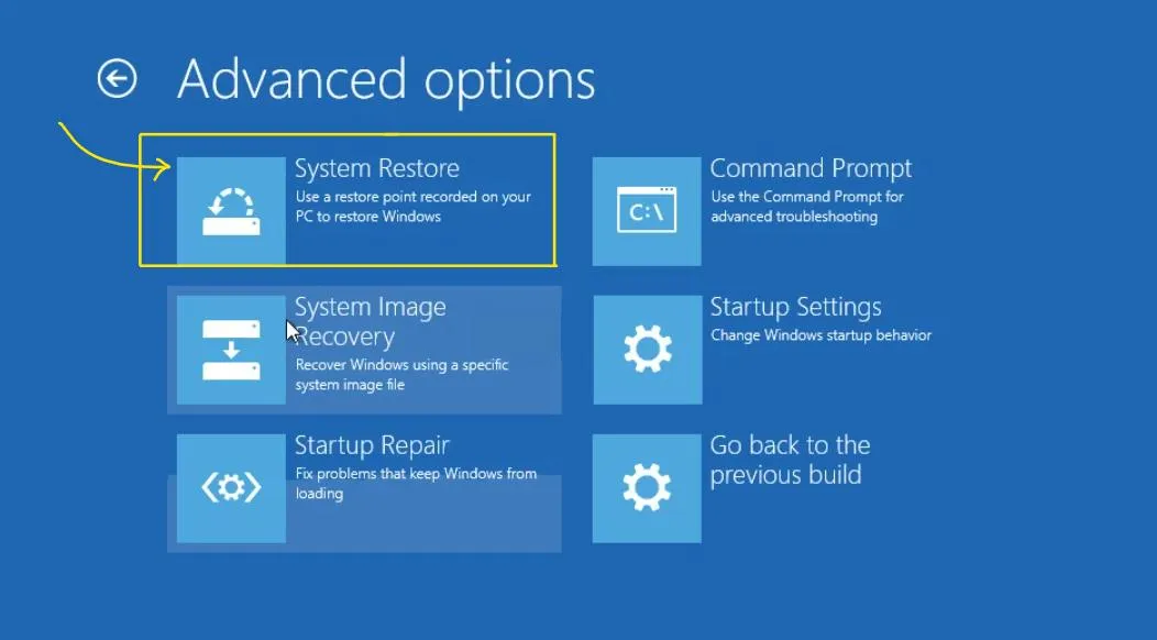 - 选择“高级选项”>“系统还原”。