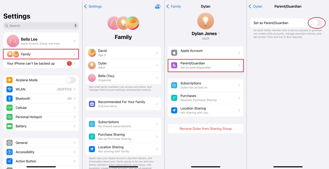 步骤 3.轻敲家长/监护人,然后点击设置为家长/监护人。